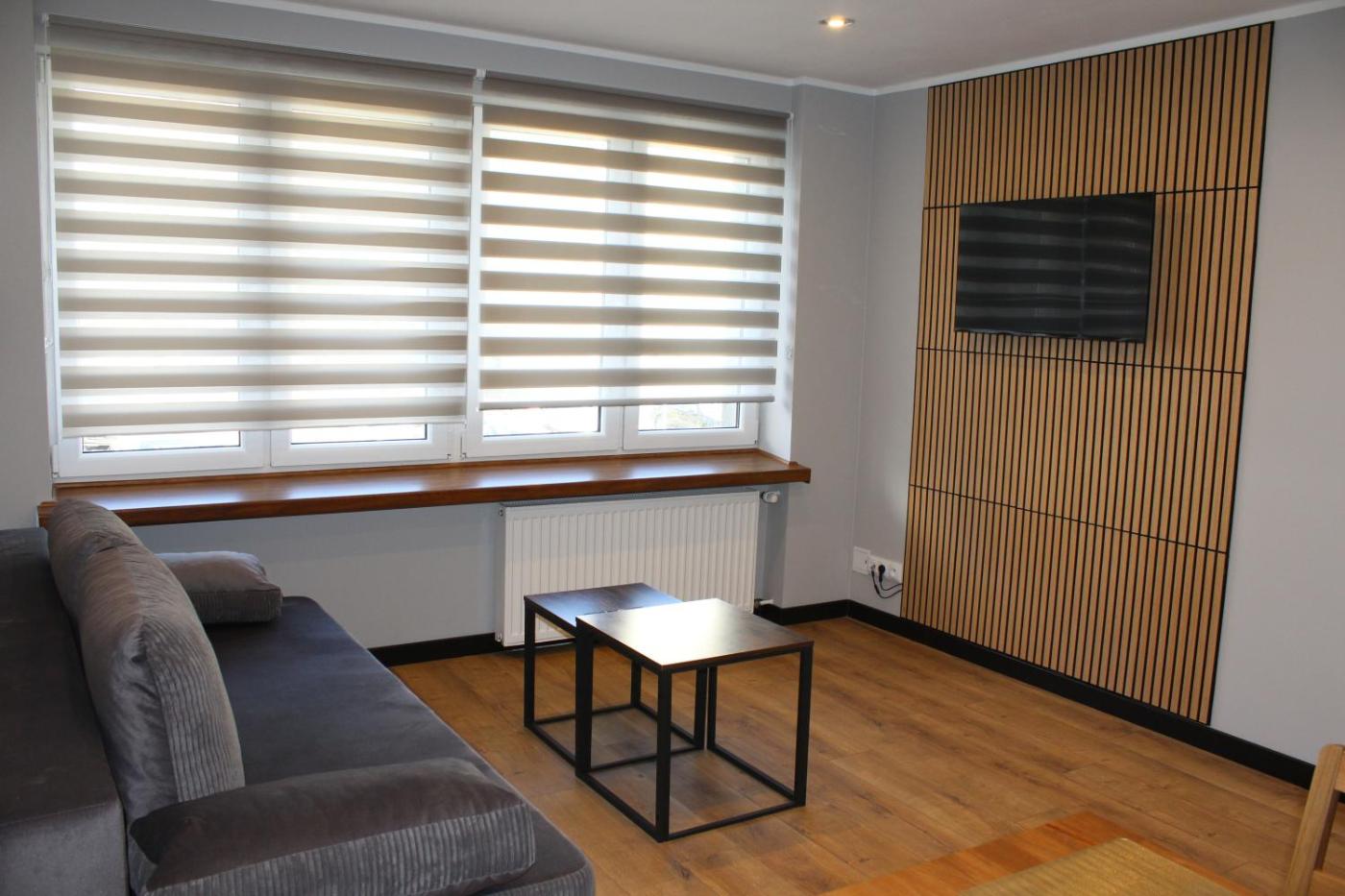 Apartament z 1 sypialnią. This apartment features 1 living room, 1 separate bedroom and 1 bathroom with a shower and a hairdryer. In the well-equipped kitchen, guests will find a stovetop, a refrigerator, a dishwasher and kitchenware. The apartment features a coffee machine, a wardrobe, a high chair for children, heating and a flat-screen TV. The unit has 3 beds. Apartament - 4 osobowy. Powierzchnia pokoju ok.: 40 mkw.
