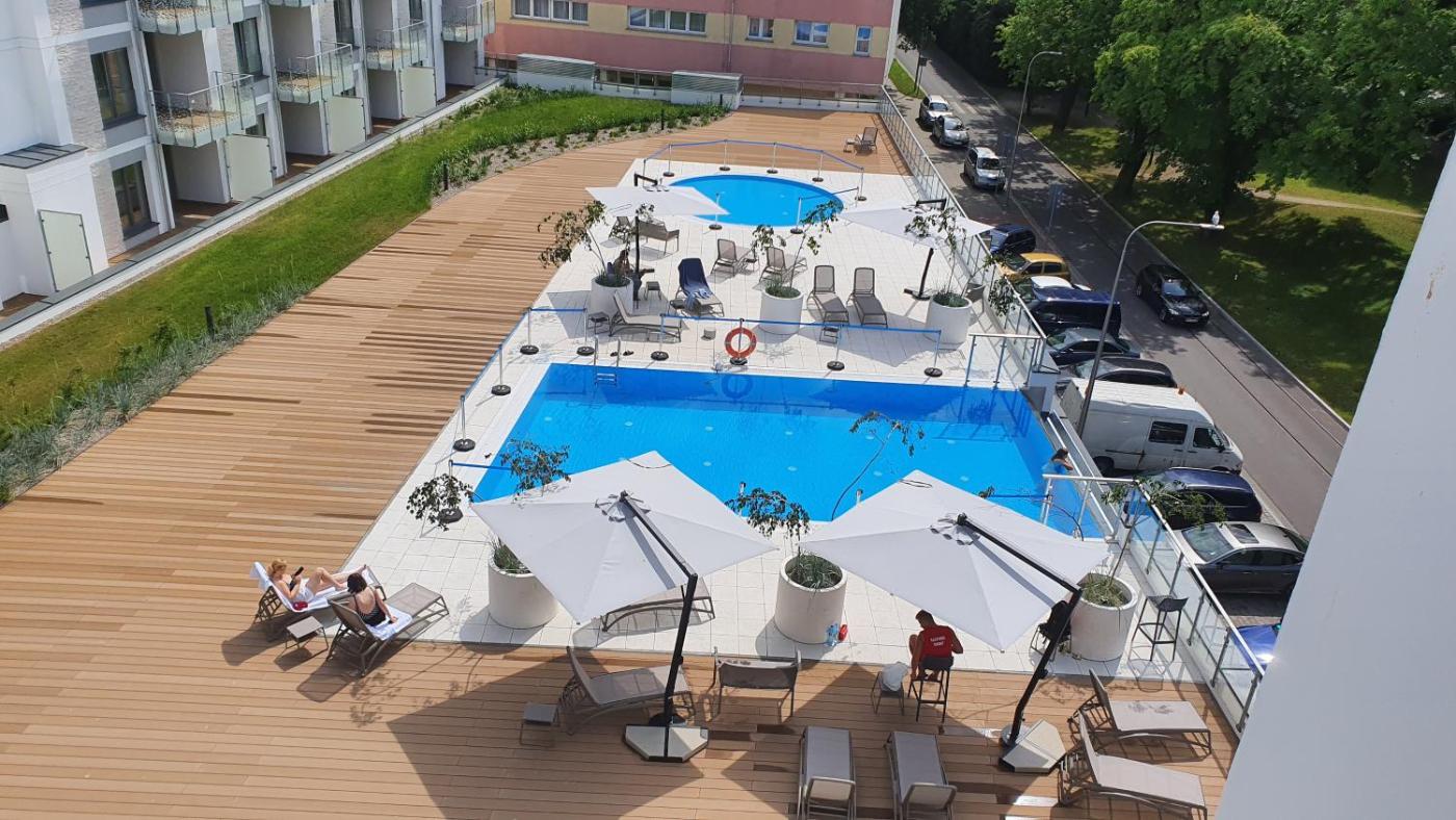 Apartament z 1 sypialnią. This apartments special feature is the pool with a view. This apartment features 1 living room, 1 separate bedroom and 1 bathroom with a walk-in shower and bathrobes. The well-fitted kitchenette has a stovetop, a refrigerator, a dishwasher and kitchenware. The apartment features a washing machine, soundproof walls, a tea and coffee maker, a flat-screen TV with streaming services, as well as city views. The unit has 2 beds. Apartament - 4 osobowy. Powierzchnia pokoju ok.: 43 mkw.
