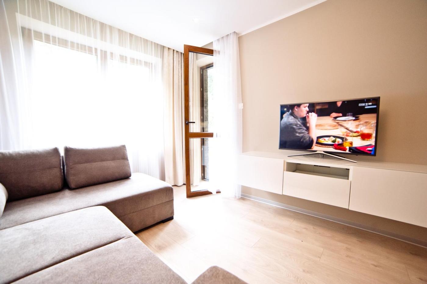 Apartament z 1 sypialnią. This apartment features a microwave, TV and stovetop. Beds are connectible. Fitted kitchenette and bathroom with shower are featured. Baby cot, high chair and potty are included. Apartament - 4 osobowy. Powierzchnia pokoju ok.: 45 mkw.