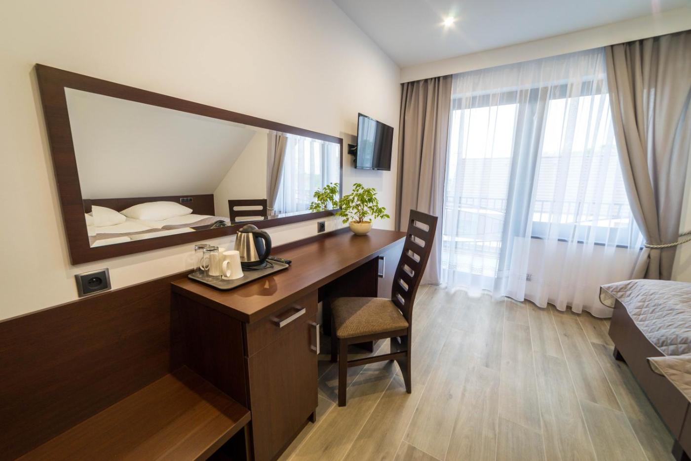Pokój Dwuosobowy z balkonem. The double room provides a tea and coffee maker, heating, a balcony with garden views as well as a private bathroom featuring a shower. The unit offers 1 bed. Pokój Dwuosobowy - 3 osobowy. Powierzchnia pokoju ok.: 15 mkw. ;