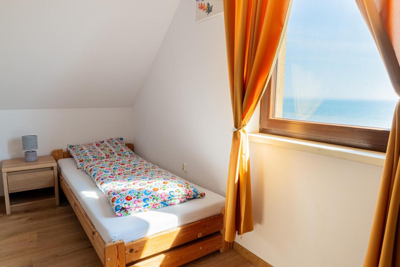 Dom z 2 sypialniami. Boasting a private entrance, this holiday home comes with 1 living room, 2 separate bedrooms and 1 bathroom with a shower and a hairdryer. Guests will find a stovetop, a refrigerator, kitchenware and a microwave in the well-equipped kitchenette. The holiday home also includes a barbecue. Featuring a terrace with sea views, this holiday home also features a tea and coffee maker and a flat-screen TV. The unit has 4 beds. Dom wakacyjny - 6 osobowy. Powierzchnia pokoju ok.: 55 mkw.