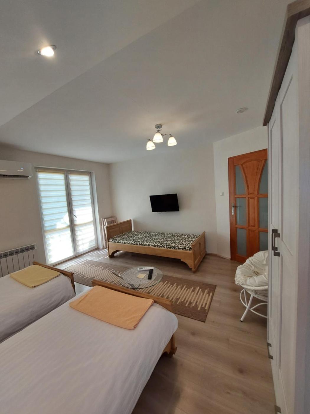 Pokój trzyosobowy z balkonem. Featuring free toiletries, this triple room includes a private bathroom with a shower, a bidet and a hairdryer. Guests will find a stovetop, kitchenware and an oven in the kitchen. The triple room also includes a barbecue. Boasting a terrace, this triple room also features air conditioning, a wardrobe and a flat-screen TV. The unit has 3 beds. Pokój Trzyosobowy - 3 osobowy. Powierzchnia pokoju ok.: 20 mkw.