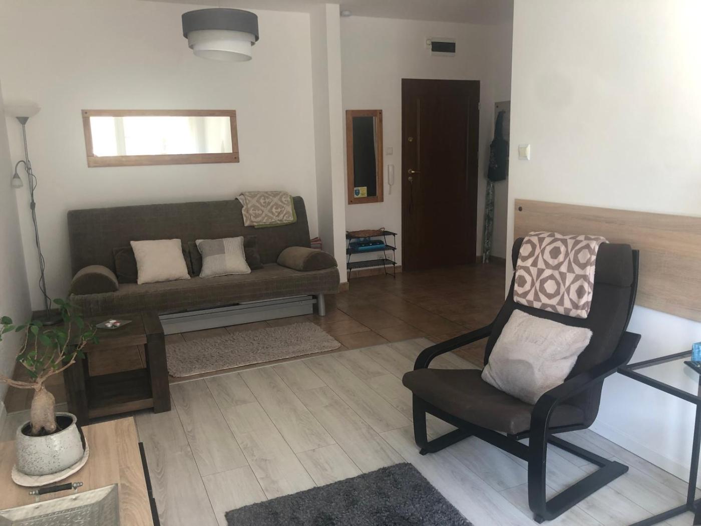 Apartament. Featuring a private entrance, this apartment is comprised of 1 living room, 1 separate bedroom and 1 bathroom with a walk-in shower and a hairdryer. The well-fitted kitchen has a stovetop, a refrigerator, kitchenware and a microwave. This apartment features a washing machine, soundproof walls, a flat-screen TV and a terrace. The unit offers 3 beds. Apartament - 4 osobowy. Powierzchnia pokoju ok.: 43 mkw.
