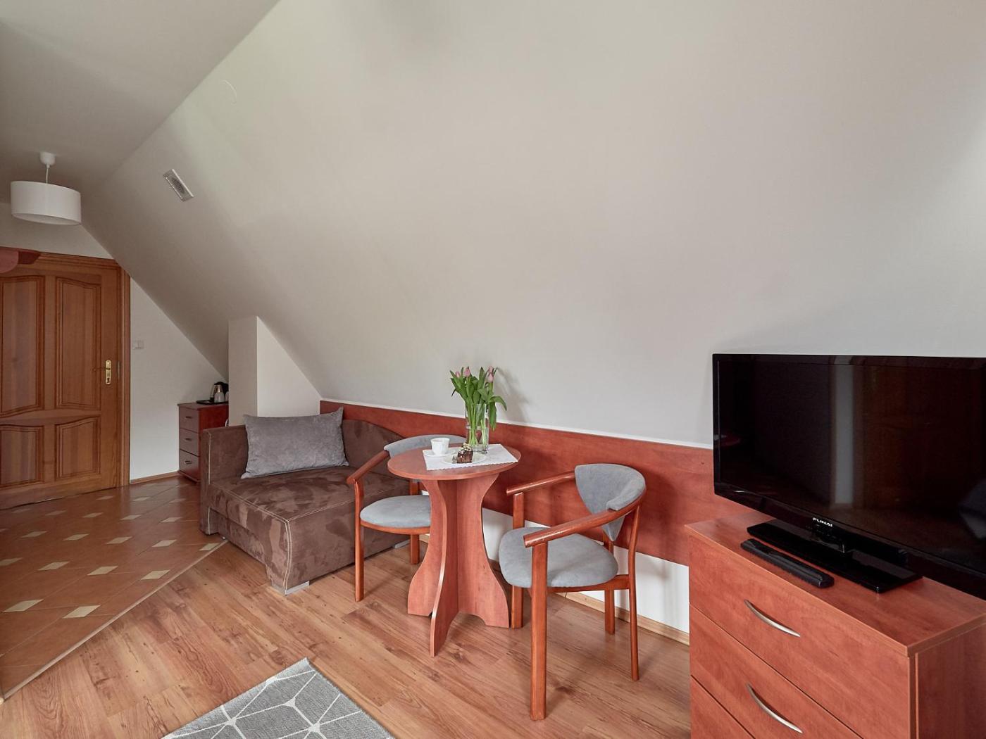 Pokój Dwuosobowy typu Deluxe z balkonem. The double room offers a tea and coffee maker, a wardrobe, as well as a private bathroom featuring a shower and a hairdryer. Boasting a balcony, this double room also features a barbecue, parquet floors and a flat-screen TV. The unit offers 1 bed. Pokój Dwuosobowy - 2 osobowy. Powierzchnia pokoju ok.: 17 mkw. ;